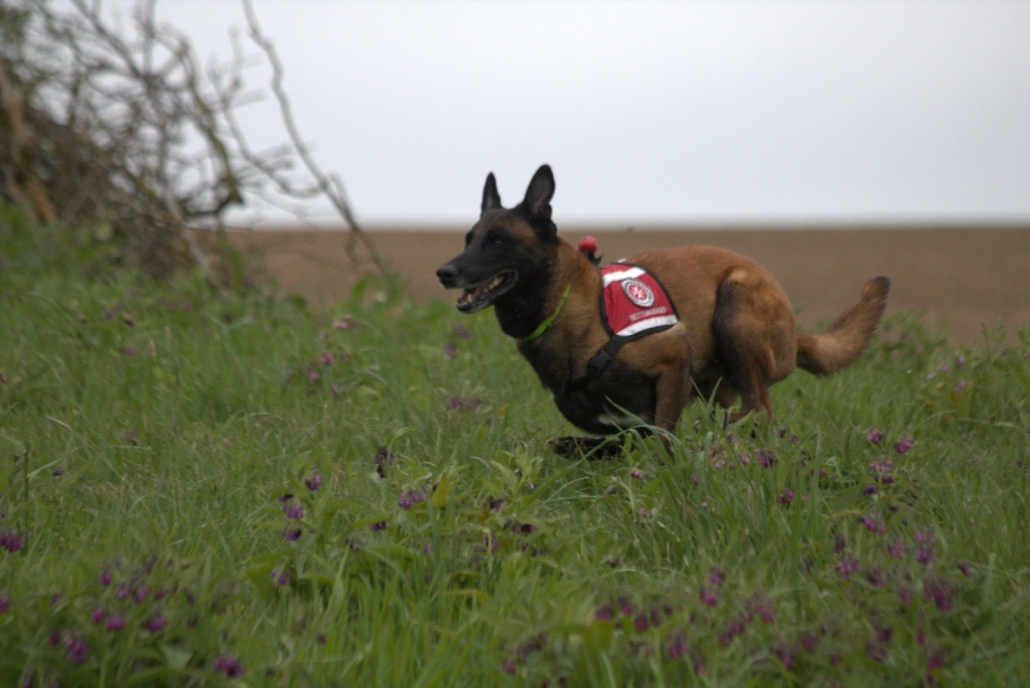 Wir starten in die Mittagspause. Die Flächen und Fährtenprüfungen im Gelände sind beendet. Am Nachmittag geht es los mit den Prüfungen am Trümmergelände. Gleichzeitig müssen sich noch einige Starter:innen bei der Unterordnung bzw. Gewandtheit beweisen. Leider wird uns auch da kein besseres Wetter vergönnt.